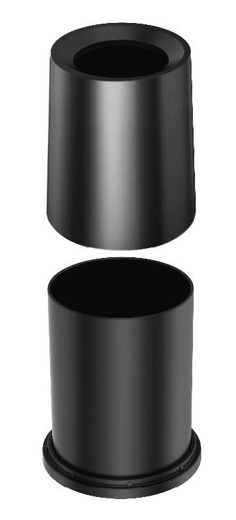 Doppelwandiger, runder Abfallbehälter mit "unsichtbarem" Innenbeutel aus Kunststoff und Stoßboden.
