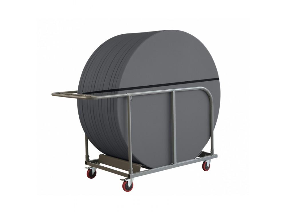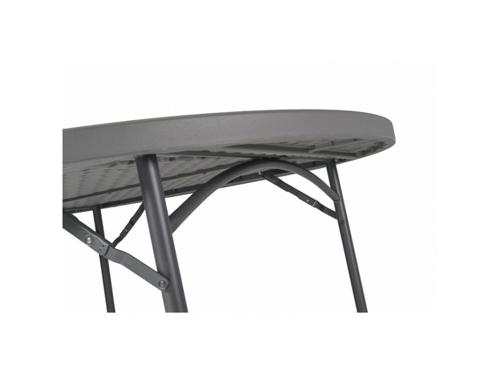 Der klappbare Banketttisch PLANET 150 ist aus Stahl mit Pulverbeschichtung. Die Tischplatte ist aus hochdichtem Polyethylen gefertigt.