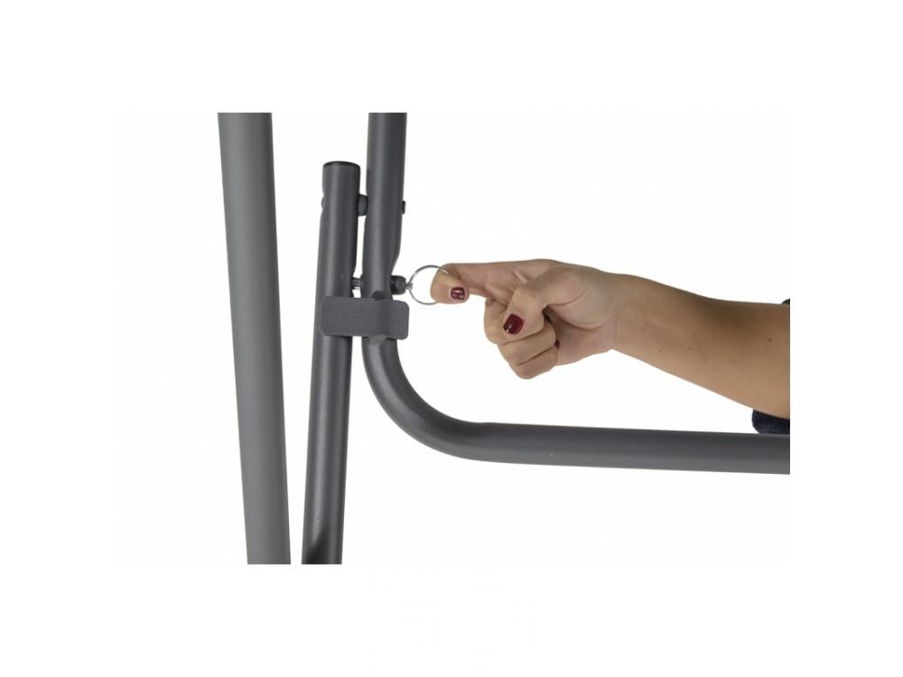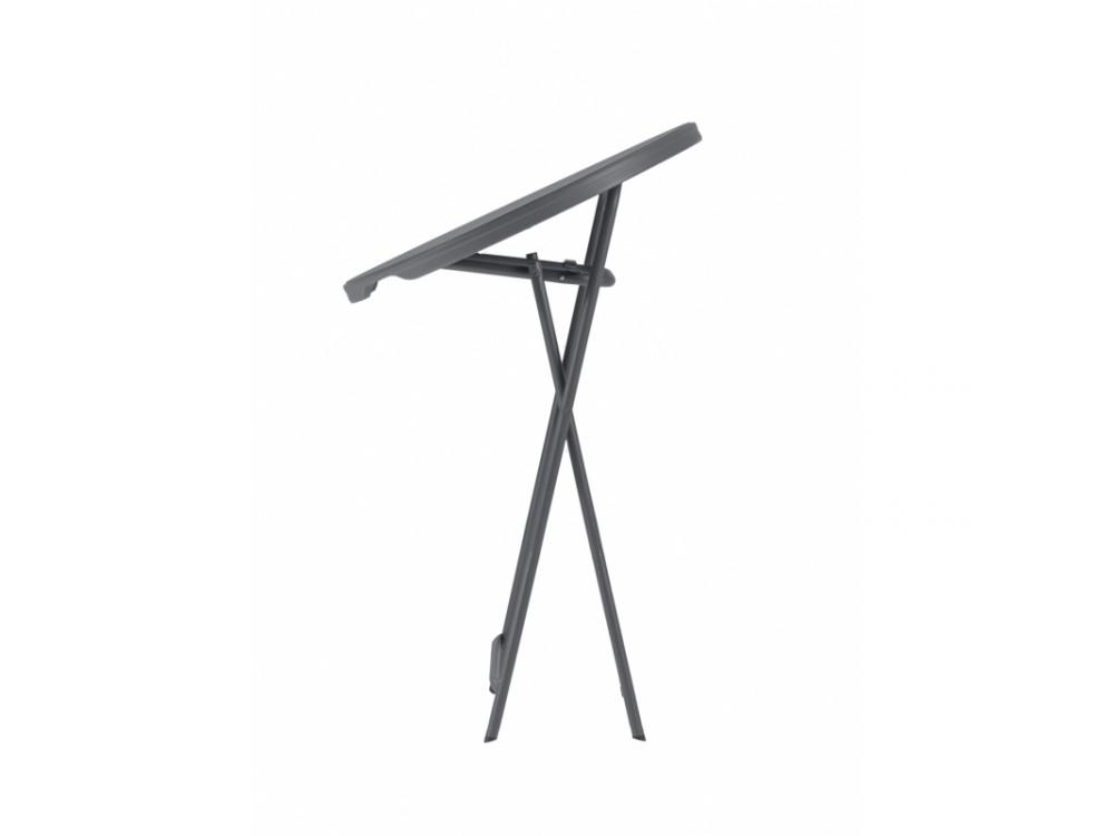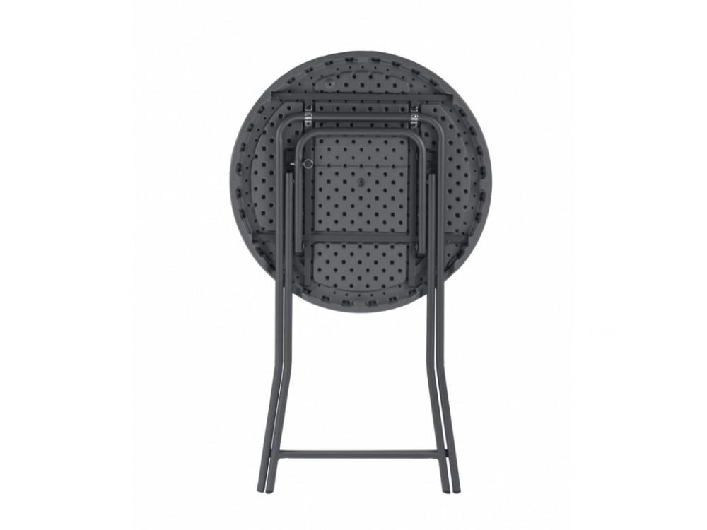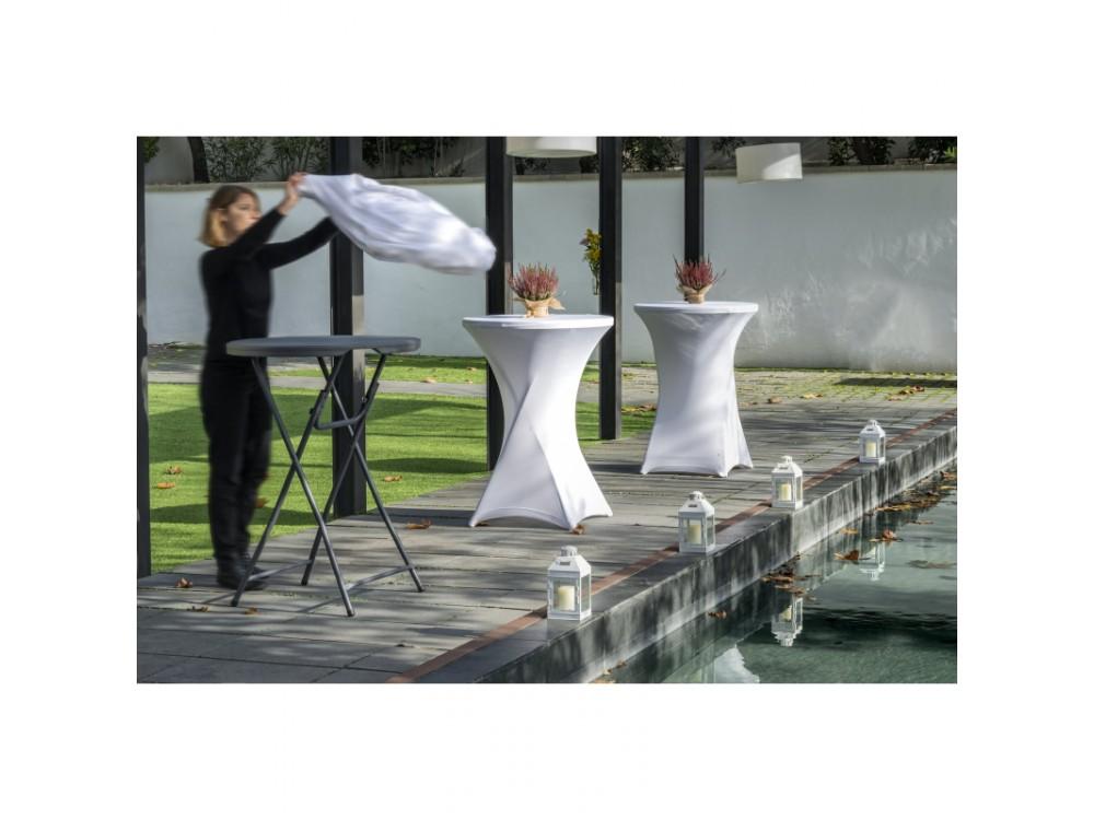 Der klappbare Banketttisch COCTAIL 80 ist aus pulverbeschichtetem Stahl gefertigt. Die Tischplatte ist aus hochdichtem Polyethylen gefertigt. Die große Basis des Tisches sorgt für mehr Stabilität
