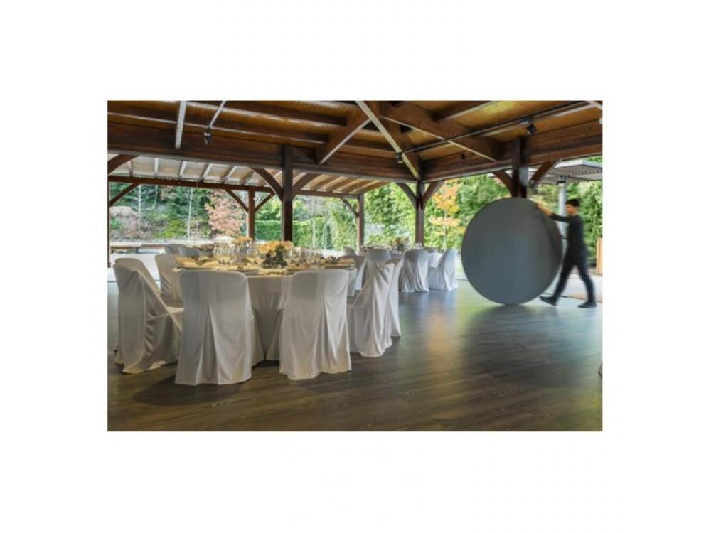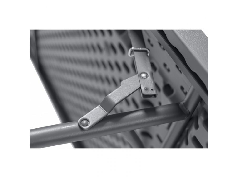Der klappbare Banketttisch PLANET 160 ist aus Stahl mit Pulverbeschichtung. Die Tischplatte ist aus hochdichtem Polyethylen gefertigt.